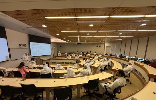 يتضمن البرنامج 36 ساعة دراسية تشمل مقررات أساسية ومقررات تخصص وأخرى اختيارية ومشروعًا للتخرج، كما ينبغي على الطالب أن يثبت جدارته العلمية من خلال اختبار شامل في المقررات الأساسية، وخلال مدة الدراسة بالبرنامج يكتسب الطلاب المعارف والمهارات للتعامل مع عدة قضايا محورية من بينها الحوكمة المؤسسية والتفاعل مع الأطراف الفاعلة وتحليل القضايا المعقدة، وتتميز عملية القبول بالتنافسية حيث يشترط توفر سجل أكاديمي قوي في درجة البكالوريوس، ودرجات مقبولة في الاختبارات القياسية، وثلاث سنوات من الخبرة العملية، وعدد من رسائل التوصية، بالإضافة إلى مقال حول الأهداف الشخصية، وقد يخضع الطالب إلى قبول مشروط يتطلب استكمال مقررات تأسيسية في الاقتصاد أو الإحصاء. ومع قبول دفعة محدودة من قرابة 20 طالبًا سنويًا يوفر البرنامج بيئة تعليمية تفاعلية غنية قائمة على محورية التعلّم الذاتي والعمل الجماعي بهدف تأهيل قادة المستقبل.